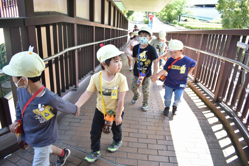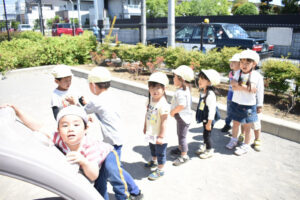 幼稚部で八幡中公園に遊びに行きました。こいのぼりを見て