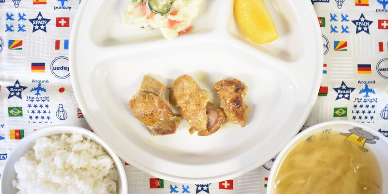 5月92023にじいろ給食ブログ~ 今日の給食 ~ ・タンドリーチキン ・ポテトサラダ ・ごはん ・キャベツともやしのみそ汁 ・もも ~ 今日のおやつ ~ ・牛乳 ・ジャムサンド Post navigationPreviousPrevious post:5月8日(月)NextNext post:5月9日(火)