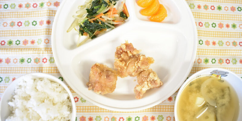 5月162023にじいろ給食ブログ~ 今日の給食 ~ ・鶏の唐揚げ ・三色ナムル ・ごはん ・じゃがいもと玉ねぎのみそ汁 ・みかん ~ 今日のおやつ ~ ・牛乳 ・マシュマロコーンフレーク Post navigationPreviousPrevious post:5月15日(月)NextNext post:5月16日(火)