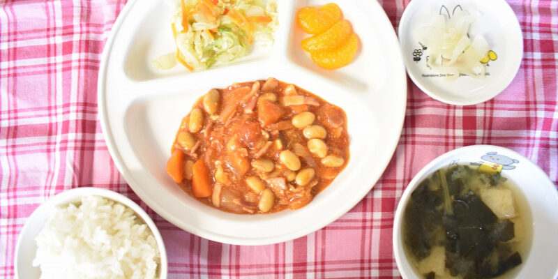 5月302023にじいろ給食ブログ~ 今日の給食 ~ ・ポークビーンズ ・キャベツと人参のごま和え ・ごはん ・ほうれん草と油揚げのみそ汁 ・みかん ~ 今日のおやつ ~ ・麦茶 ・レアヨーグルトケーキ Post navigationPreviousPrevious post:5月29日(月)NextNext post:5月30日(火)