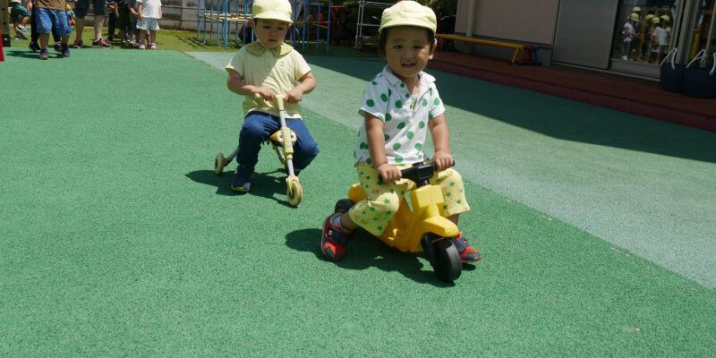 園庭で遊びました。暑かったので、こまめに水分をとりながら園庭の遊具で遊びました。