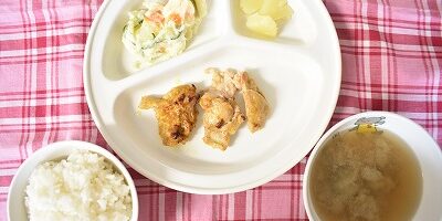6月142023にじいろ給食ブログ~ 今日の給食 ~ ・タンドリーチキン ・ポテトサラダ ・ごはん ・なすと玉ねぎのみそ汁 ・パイン ~ 今日のおやつ ~ ・牛乳 ・お好み焼き Post navigationPreviousPrevious post:6月14日(水)NextNext post:6月15日(木)