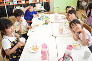 6月162023にじいろブログ本日はたいよう組のおやつの時間の様子です☆ 当番さんが前に出て❝いただきます❞と❝ごちそうさま❞のご挨拶をみんなでします。 今日はくまとほしとハートのクッキーをみて「かわいい」といいながら ぺろりと食べました。 Post navigationPreviousPrevious post:6月16日(金)NextNext post:6月19日(月)