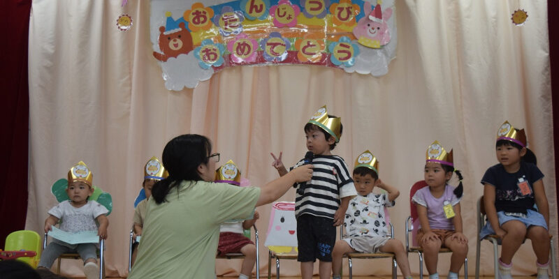 6月282023にじいろブログ本日は6月生まれのお友だちのお誕生日会を行いました☆ マイクを向けられて堂々と答えている姿を見てとても成長を感じられました。 6月生まれのお友だちお誕生日おめでとうございます☆ 午後そら組とたいよう組は七夕交流会でファリス八幡に行きました☆ 一緒に制作をして、おじいちゃんおばあちゃんにとても喜んでもらえて素敵な交流をもてました。 Post navigationPreviousPrevious post:6月28日(水)NextNext post:6月29日(木)