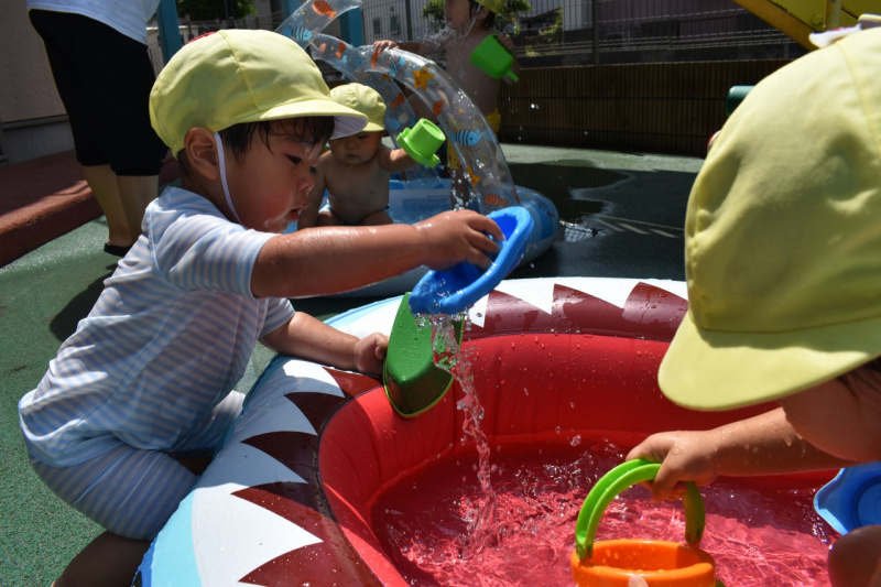 みんなお水が大好きで玩具を使ってパシャパシャと遊んでいました。