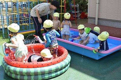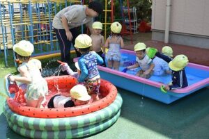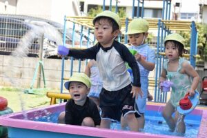 7月242023にじいろブログ本日はめろん組の様子です☆ お水遊びでは先生にお水をかけようと一生懸命になっている姿や、お水をかけられて『キャーキャー』言っている姿がたくさん見られました。みんなで楽しく遊びました☆ Post navigationPreviousPrevious post:7月21日(金)NextNext post:7月24日(月)