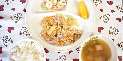 8月42023にじいろ給食ブログ~ 今日の給食 ~ ・豚肉とキャベツのみそ炒め ・ちくわときゅうりの和え物 ・ごはん ・お麩とオクラのすまし汁 ・もも ~ 今日のおやつ ~ ・牛乳 ・おひさまゼリー ・甘辛せんべい Post navigationPreviousPrevious post:8月4日(金)NextNext post:令和5年度 第3回 子育て講座「子どもの発達について」 ~親子であそぼう!ふれあい遊び~