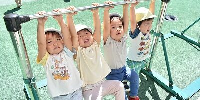 園庭でお友達とかけっこしたり、鉄棒にみんなでぶら下がったりして遊びました。
