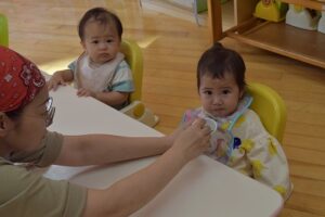 10月242023にじいろブログ本日はもも組の様子です☆ お昼寝後のおやつの時間です。芋もち田楽を美味しそうにペロリと食べていました。 Post navigationPreviousPrevious post:11月の園庭開放についてNextNext post:10月25日(水)