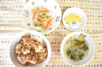 10月252023にじいろ給食ブログ~ 今日の給食 ~ ・マーボー豆腐丼 ・春雨サラダ ・わかめスープ ・パイン ~ 今日のおやつ ~ ・麦茶 ・お誕生日ケーキ Post navigationPreviousPrevious post:10月24日(火)NextNext post:10月23日(水)