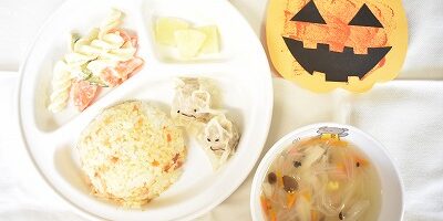 10月312023にじいろ給食ブログ~ 今日の給食 ~ ・ハムピラフ ・おばけしゅうまい ・マカロニサラダ ・春雨スープ ・パイン ~ 今日のおやつ ~ ・牛乳 ・ハロウィンクッキー Post navigationPreviousPrevious post:10月30日(月)「いちご組:きのこ割き」NextNext post:10月31日(火)