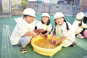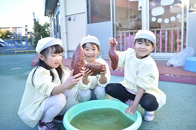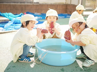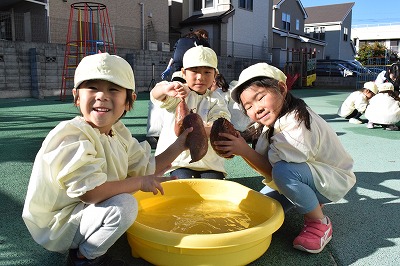 さつま芋の付いている土が落ち、桶の水やさつまいもの色が変わるのが楽しかったようです。