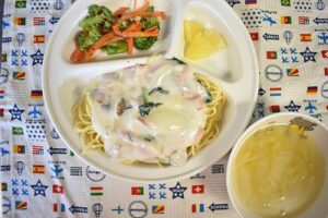 11月302023にじいろ給食ブログ~ 今日の給食 ~ ・クリームスパゲティー ・ブロッコリーと人参のゆかり和え ・白菜とコーンのスープ ・パイン ~ 今日のおやつ ~ ・牛乳 ・わかめおにぎり Post navigationPreviousPrevious post:11月29日(水)NextNext post:11月30日(木)