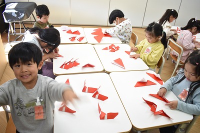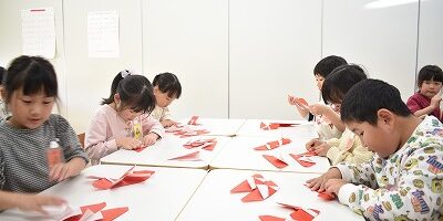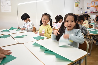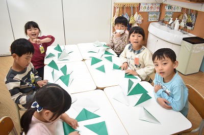 クリスマスの制作をしました。とても集中して取り組んでいて10枚も折り紙おりました。