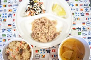 12月262023にじいろ給食ブログ~ 今日の給食 ~ ・豚肉のみそ焼き ・ひじきの白和え ・おこわ ・けんちん汁 ・パイン ~ 今日のおやつ ~ ・牛乳 ・お麩ラスク 幼稚部が「お餅つきと鏡餅づくり」を行いました。 お餅つきと鏡餅づくり様子は、にじいろブログをご覧ください。 Post navigationPreviousPrevious post:12月26日(火)NextNext post:12月27日(水)