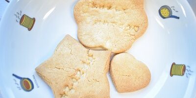 今年初めての午後おやつは、「あけましておめでとう」と「2024」と書いてあるクッキーをつくりました。