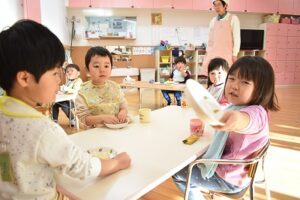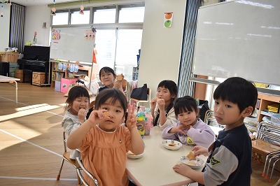子どもたちは、文字を読みながら楽しそうに食べていました。