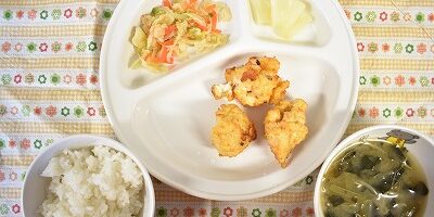 1月292024にじいろ給食ブログ~ 今日の給食 ~ ・鶏ひき肉とツナの落とし揚げ ・キャベツと人参のごま和え ・ごはん ・ほうれん草ともやしのみそ汁 ・パイン ~ 今日のおやつ ~ ・牛乳 ・マシュマロコーンフレーク Post navigationPreviousPrevious post:1月26日(金)NextNext post:1月30日(火)