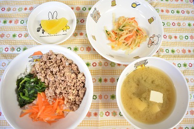 1月302024にじいろ給食ブログ~ 今日の給食 ~ ・三色丼 ・切り干し大根のサラダ ・豆腐とわかめのみそ汁 ・もも ~ 今日のおやつ ~ ・牛乳 ・芋もち田楽 Post navigationPreviousPrevious post:1月29日(月)NextNext post:1月30日(火)