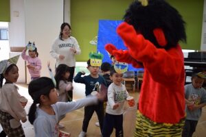 2月12024にじいろブログ本日は節分の鬼退治を行いました。 豆まきでは鬼さんがこわくて泣いているお友達もいましたが、 最後は鬼さんが「ごめんなさい」をして仲良くなりました。 Post navigationPreviousPrevious post:1月31日(水)NextNext post:2月1日(木)