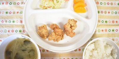 2月152024にじいろ給食ブログ~ 今日の給食 ~ ・鶏の唐揚げ ・コールスローサラダ ・ごはん ・ほうれん草ともやしのみそ汁 ・みかん ~ 今日のおやつ ~ ・牛乳 ・塩せんべい ・ビスケット(保育部) ・クリームサンドビスケット(幼稚部) Post navigationPreviousPrevious post:2月14日(水)NextNext post:2月16日(金)
