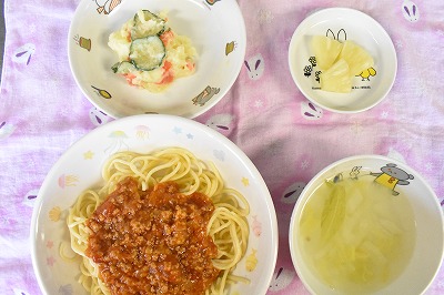 2月202024にじいろ給食ブログ~ 今日の給食 ~ ・ミートソーススパゲティー ・ポテトサラダ ・白菜とコーンのスープ ・パイン ~ 今日のおやつ ~ ・牛乳 ・納豆チャーハン Post navigationPreviousPrevious post:2月19日(月)NextNext post:2月20日(火)