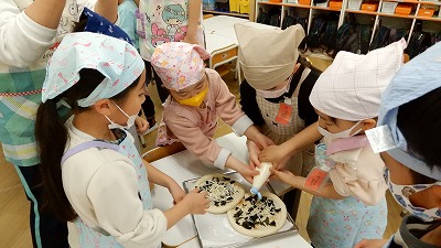 一つ一つお友達とそ考えながら、楽しく素敵なピザができあがりました。