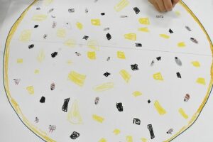 「耳も描こう」や「しらすは目も描こう」等と、それぞれ話をしながら楽しく描いていました。