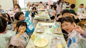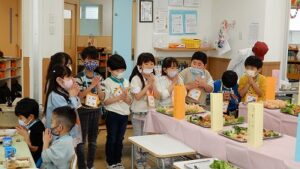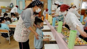 3月52024にじいろブログ本日はお別れバイキングの様子です☆ たいよう組のリクエストメニューでバイキングをしました。 他クラスのお友達と一緒に食べて、いつもと違う雰囲気で楽しみました。 「おかわりしてお腹いっぱい」「もう動けない」と言っているお友だちがたくさんいました。 Post navigationPreviousPrevious post:3月5日(火)NextNext post:3月6日(水)