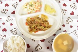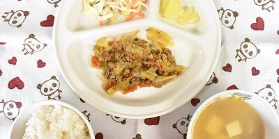 3月192024にじいろ給食ブログ~ 今日の給食 ~ ・ひき肉の野菜炒め ・スパゲティーサラダ ・ごはん ・豆腐となめこのみそ汁 ・パイン ~ 今日の給食 ~ ・牛乳 ・芋もち田楽 Post navigationPreviousPrevious post:3月19日(火)NextNext post:3月22日(金)