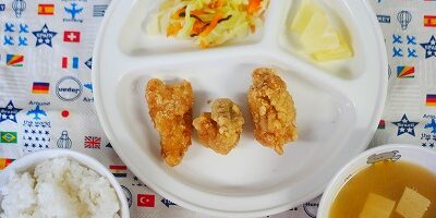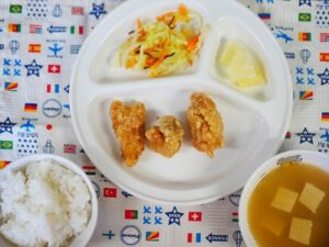 4月92024にじいろ給食ブログ~ 今日の給食 ~ ・鶏の唐揚げ ・キャベツと人参の昆布和え ・ごはん ・高野豆腐としめじのみそ汁 ・パイン ~ 今日のおやつ ~ ・牛乳 ・チヂミ Post navigationPreviousPrevious post:4月8日(月)お花見NextNext post:4月10日(水)
