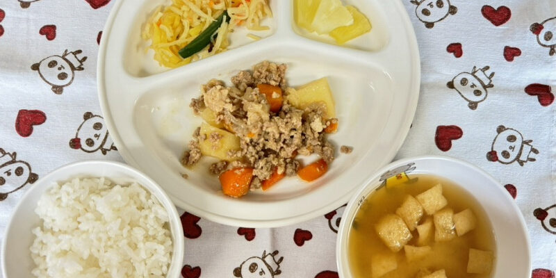5月282024にじいろ給食ブログ~ 今日の給食 ~ ・じゃがいものそぼろ煮 ・カミカミサラダ ・ごはん ・豆腐と油揚げのみそ汁 ・パイン ~ 今日のおやつ ~ ・牛乳 ・冷やしたぬきうどん Post navigationPreviousPrevious post:5月23日(木)「そら・たいよう組:シュガートーストづくり」NextNext post:6月3日(月)