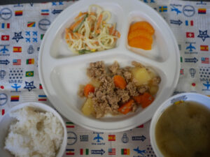 6月112024にじいろ給食ブログ~ 今日の給食 ~ ・じゃがいものそぼろ煮 ・スパゲティーサラダ ・ごはん ・なすと玉ねぎのみそ汁 ・みかん ~ 今日のおやつ ~ ・牛乳 ・チヂミ Post navigationPreviousPrevious post:6月10日(月)NextNext post:6月11日(火)
