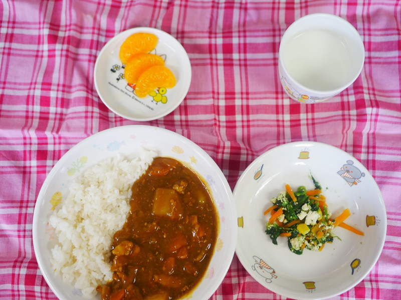 7月12024にじいろ給食ブログ~ 今日の給食 ~ ・カレーライス ・ほうれん草の白和え ・牛乳 ・みかん ~ 今日のおやつ ~ ・麦茶 ・フルーチェ Post navigationPreviousPrevious post:6月27日(木)NextNext post:7月1日(月)