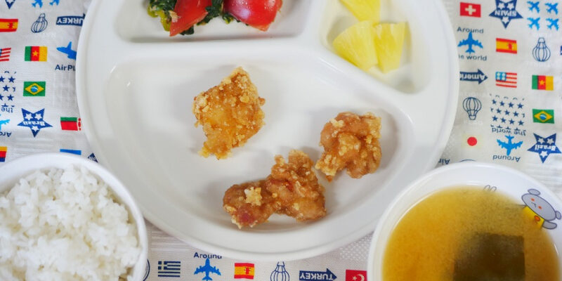 7月102024にじいろ給食ブログ~ 今日の給食 ~ ・鶏の唐揚げ ・ほうれん草とトマトのツナサラダ ・ごはん ・じゃがいもと玉ねぎのみそ汁 ・パイン ~ 今日のおやつ ~ ・牛乳 ・えだ豆 ・ビスケット Post navigationPreviousPrevious post:7月9日(火)NextNext post:7月10日(水)
