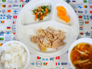 7月182024にじいろ給食ブログ~ 今日の給食 ~ ・豚肉のみそ焼き ・オクラの納豆和え ・ごはん ・とうがん汁 ・みかん ~ 今日のおやつ ~ ・牛乳 ・マシュマロコーンフレーク Post navigationPreviousPrevious post:7月16日(火)NextNext post:7月18日(木)