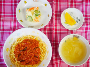 7月312024にじいろ給食ブログ~ 今日の給食 ~ ・なすのミートソーススパガティー ・ポテトサラダ ・野菜スープ ・もも ~ 今日のおやつ ~ ・牛乳 ・おかかおにぎり Post navigationPreviousPrevious post:7月30日(火)NextNext post:8月1日(木)