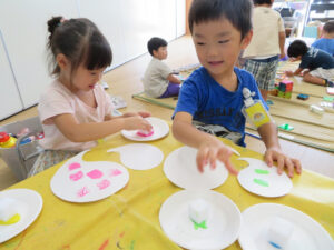 「私ピンクが好きなの」「〇をかいたよ」などたくさん会話も楽しみました。