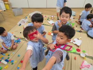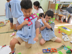 その後はマグフォーマーで色々な形を作って楽しみました。