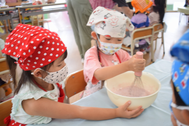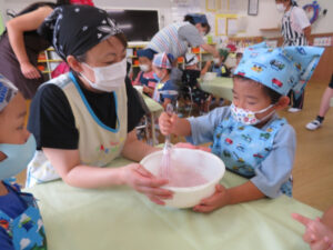 デザートのフルーチェも、みんなで楽しくまぜまぜしました。