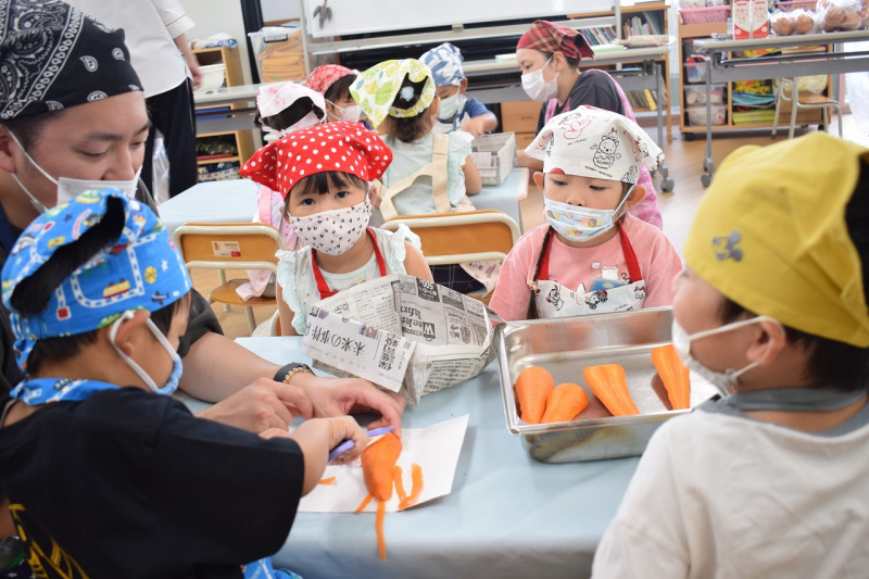 幼稚部みんなで野菜を洗うところからスタートです。