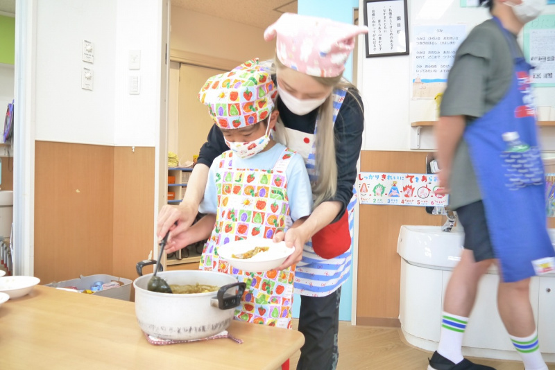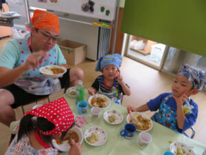 ボランティアの保護者の皆さまにも大勢ご参加していただき、楽しいカレー作りとなりました。