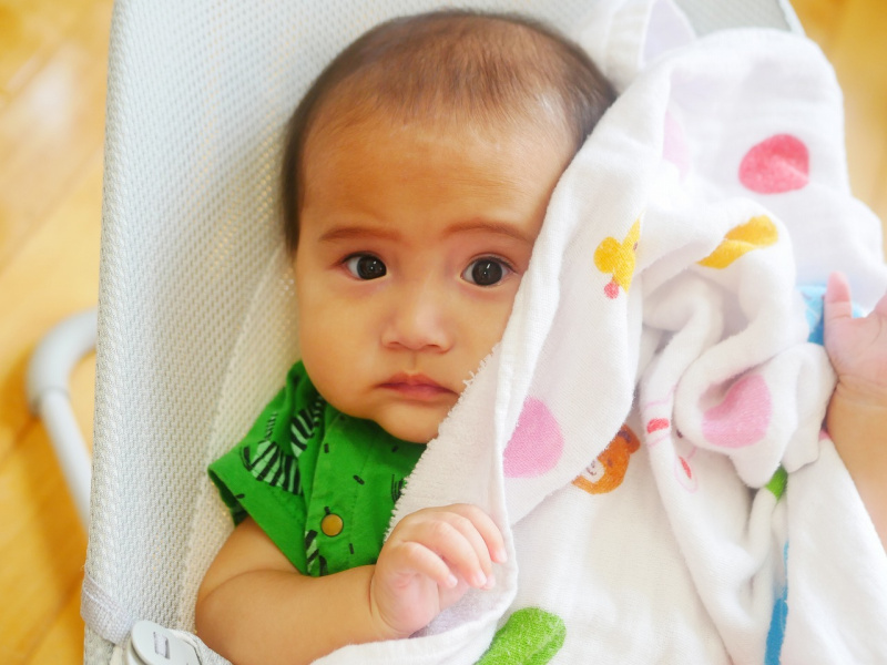 午前中に水遊びを行い、お着替えを済ませた後のとてもリラックスした時間です。