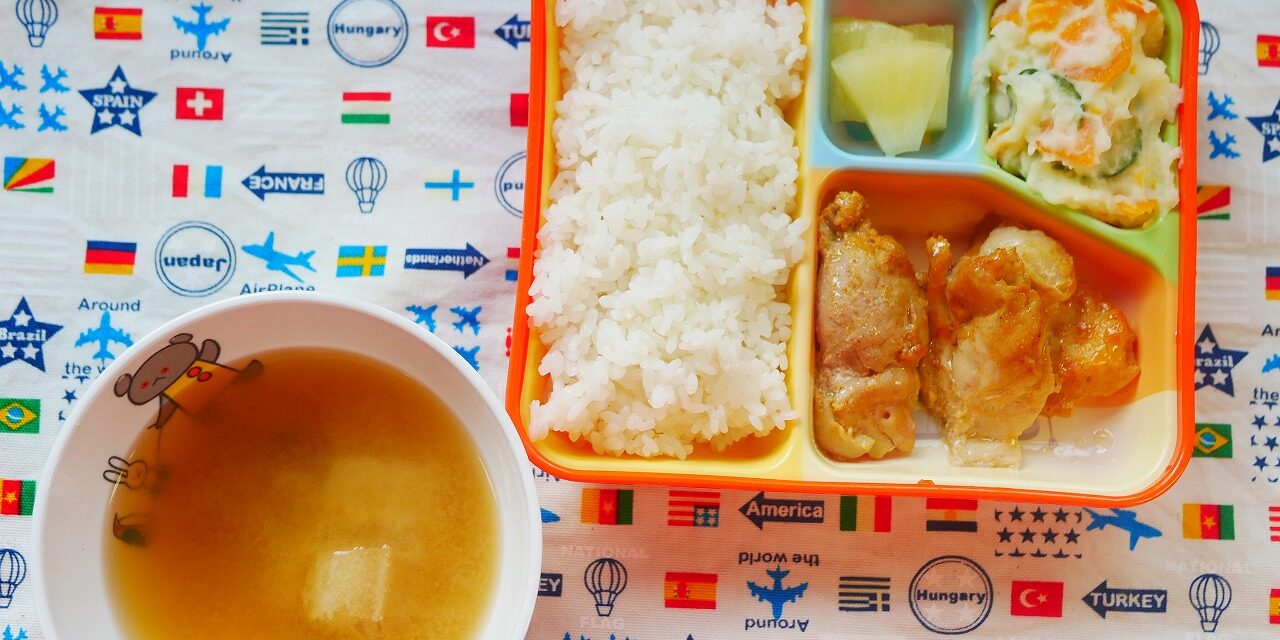 8月152024にじいろ給食ブログ~ 今日の給食 ~ ・タンドリーチキン ・ポテトサラダ ・ごはん ・お麩とわかめのみそ汁 ・パイン お盆期間で人数が少なかったため、幼稚部もお弁当箱に詰めました。 子ども達は、嬉しそうに蓋を開けて食べていました。 ~ 今日のおやつ ~ ・牛乳 ・おひさまゼリー ・甘辛せんべい 丸い形のアセロラゼリーを「おひさまだね」や、「酸っぱいくて甘くておいしい」と楽しく食べていました。 Post navigationPreviousPrevious post:8月15日(木)NextNext post:8月16日(金)