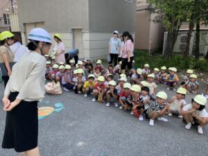今日は、全職員、全園児で八幡小学校へ避難をしました。 めろん組は、たいよう組のお兄さん、お姉さんと手をつないで 行ったのでニコニコでした。 小学校では、静かに校長先生のお話を聞くことができました。 Post navigationPreviousPrevious post:9月11日(水)NextNext post:9月12日(木)