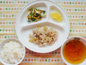 10月12024にじいろ給食ブログ~ 今日の給食 ~ ・豚肉のみそ焼き ・ほうれん草の白和え ・ごはん ・けんちん汁 ・パイン ~ 今日のおやつ ~ ・牛乳 ・お麩ラスク Post navigationPreviousPrevious post:9月30日 お誕生日会NextNext post:10月1日(火)