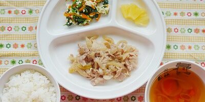 10月12024にじいろ給食ブログ~ 今日の給食 ~ ・豚肉のみそ焼き ・ほうれん草の白和え ・ごはん ・けんちん汁 ・パイン ~ 今日のおやつ ~ ・牛乳 ・お麩ラスク Post navigationPreviousPrevious post:9月30日 お誕生日会NextNext post:10月1日(火)