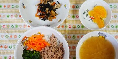 10月32024にじいろ給食ブログ~ 今日の給食 ~ ・三色丼 ・ひじき煮 ・キャベツともやしのみそ汁 ・みかん ~ 今日のおやつ ~ ・牛乳 ・フルーツポンチ Post navigationPreviousPrevious post:10月2日(水)NextNext post:10月4日(金)