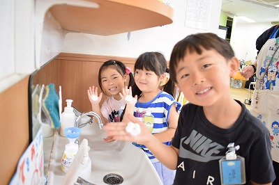 楽しかったのかいつもより丁寧に手を洗っていました。