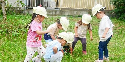 遊具で遊んだり、草で何を見つけたのでしょうか。